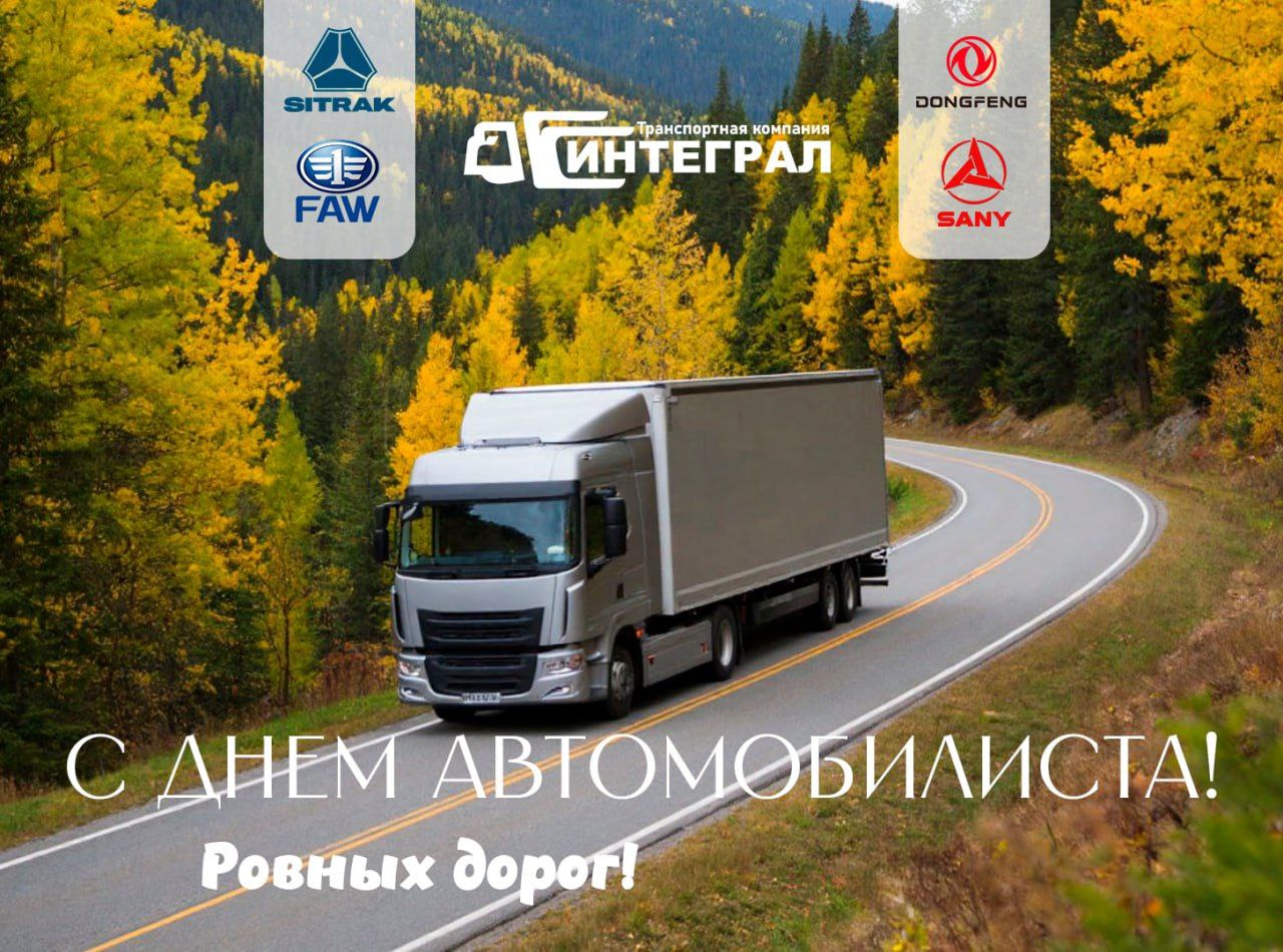 Транспортная компания «Интеграл» поздравляет вас с Днем автомобилиста! Мы в транспортной компании "Интеграл" искренне ценим ваш труд и хотим выразить благодарность каждому из вас за то, что выбираете нас в качестве надежного партнера. Этот день — не просто праздник, а дань уважения всем тем, кто ежедневно преодолевает километры, обеспечивая бесперебойное движение товаров и услуг по нашей стране. Ваша работа требует не только профессионализма, но и безграничного терпения, а также любви к своему делу.